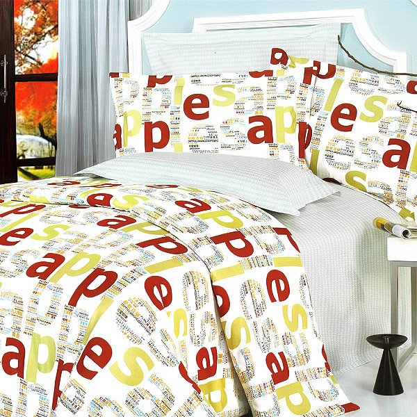 Home > Blancho Bedding - [Apple Letter] 100% Cotton 5PC Comforter Set (King Size)