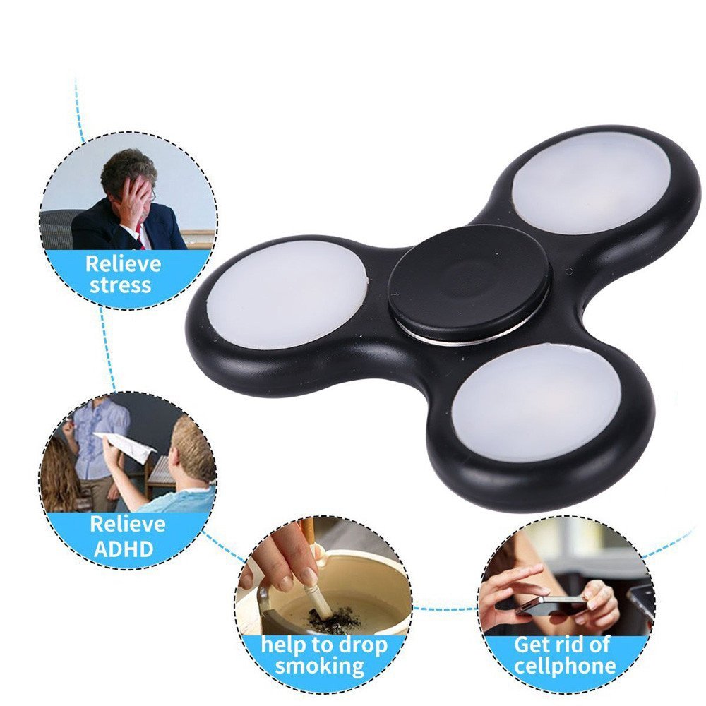 LED Light Fidget Hand Spinner Torqbar Finger Toy EDC Focus Gyro Fast ShippingFeatures: Specification: High speed Si3N4 High Quality. Small coefficient of friction. Note: This spinner fidget is one of the first spinners with LED LIGHTING SPINNERS in the market,you need to pull the paper from the batteries to turn the continuously changing light on and put the paper back to turn the light off. 20 Hours continuously lighting. A good choice for killing time, helping relieve stress Gurantee 1 mins plus up to 4 min spin time Product size perfect size suitable for adults and kids Using great bearings, the middle one is a hybrid ceramic bearing, for ultra smooth spin High performance bearing for extremely fast and long spin times How to play: Hold spinner in one hand and use the other hand to spin it rapidly, using small continuous strikes to keep it spinning indefinitely with practice; spinners can be spun using one hand only, using the fingers of one hand to stop and start spinning Product weight: 30g. Color changing led.Package Content: Package: 1 LED spinner